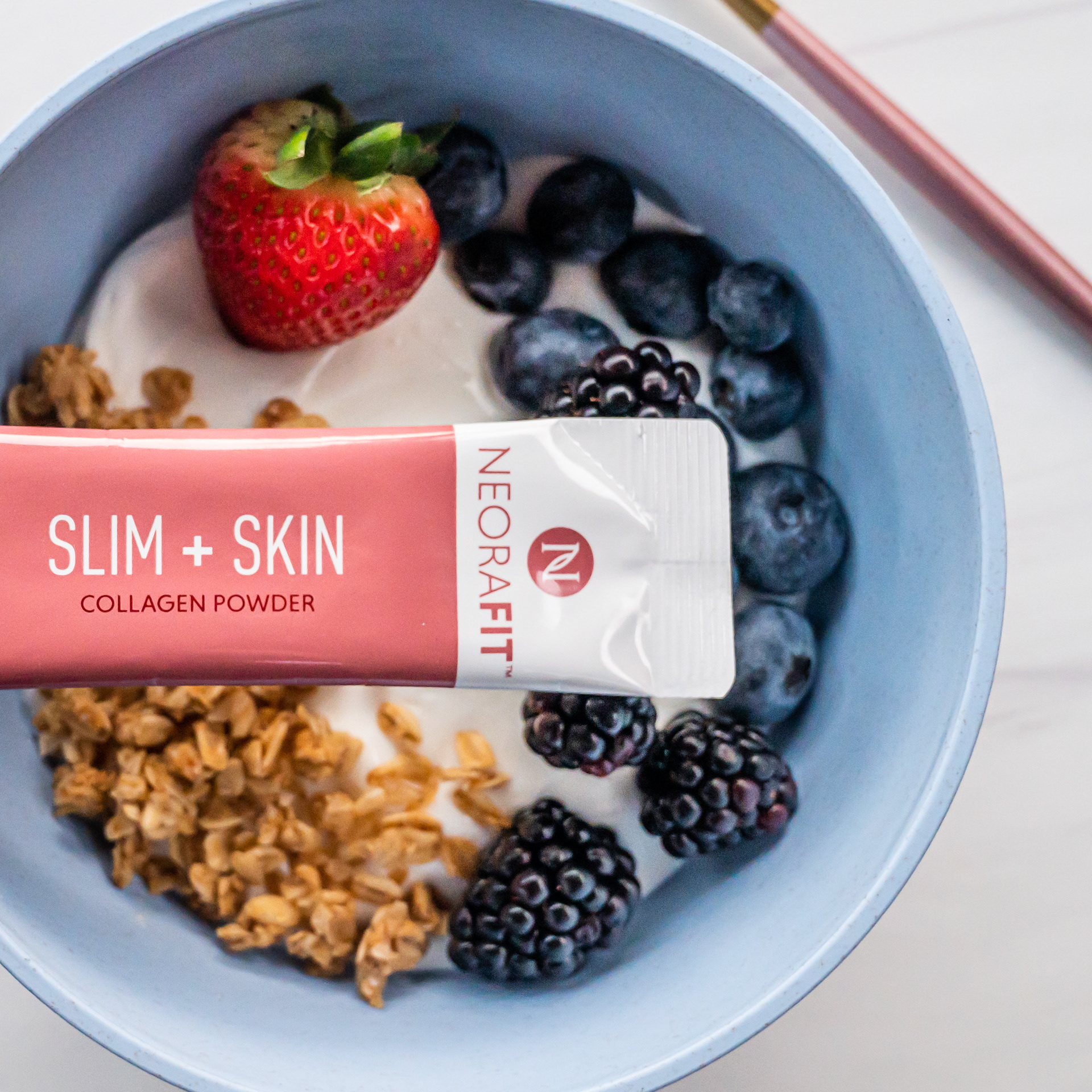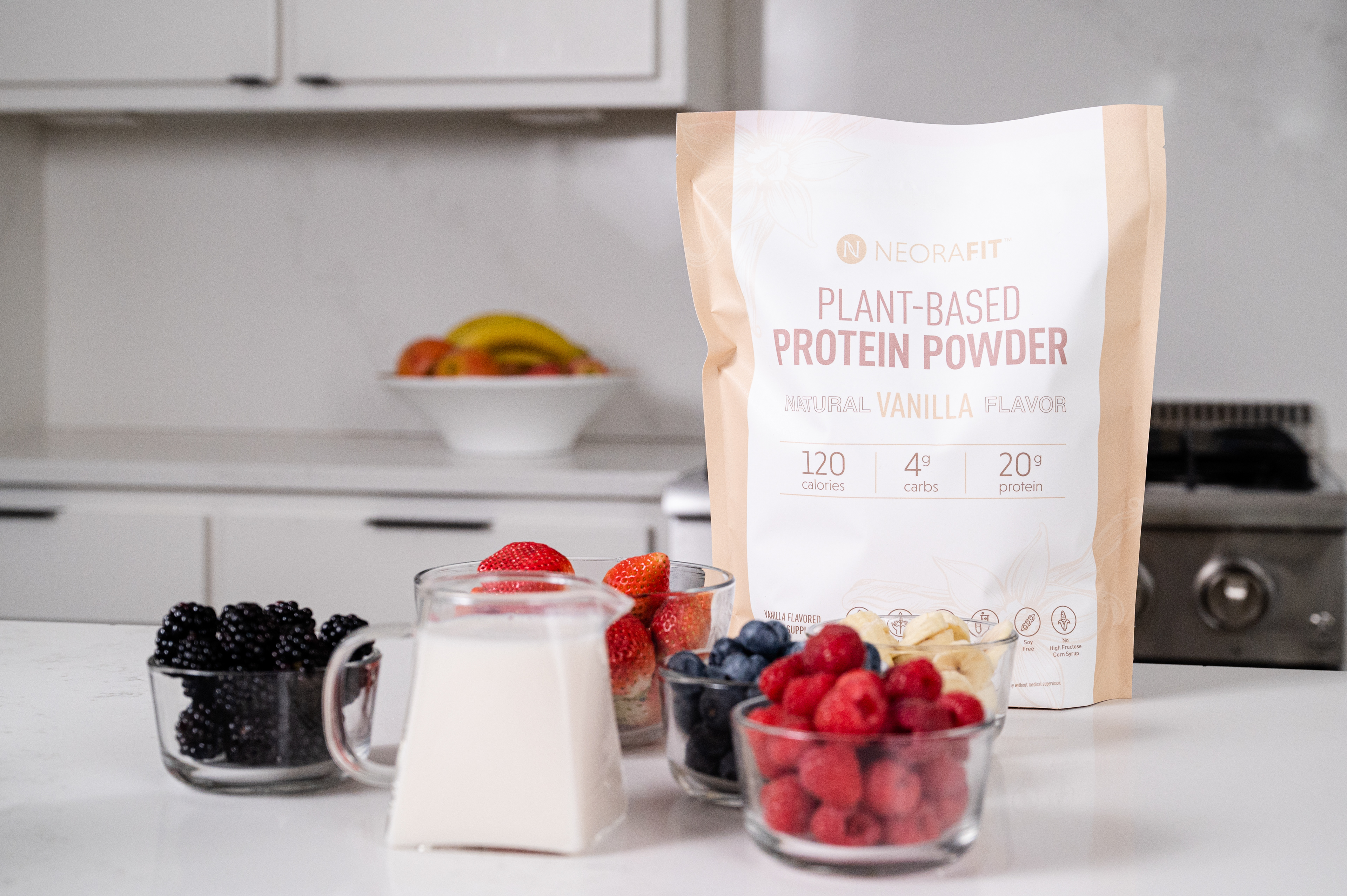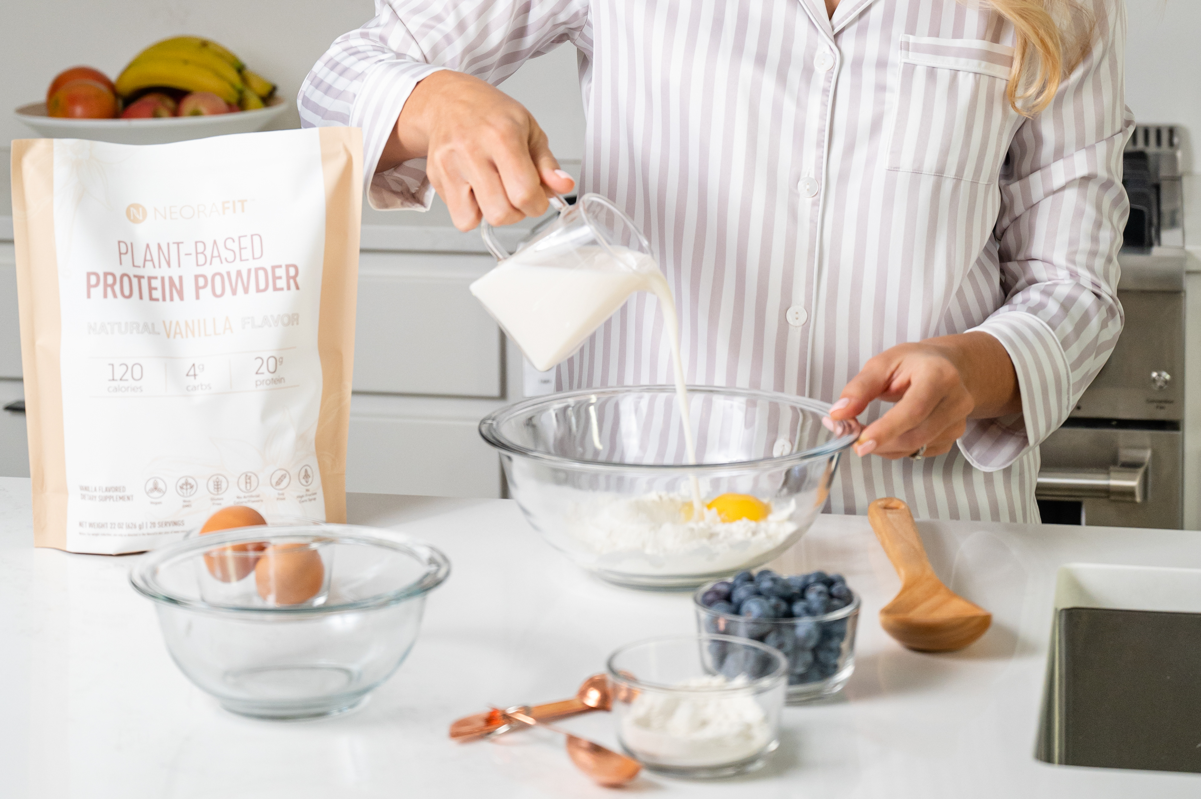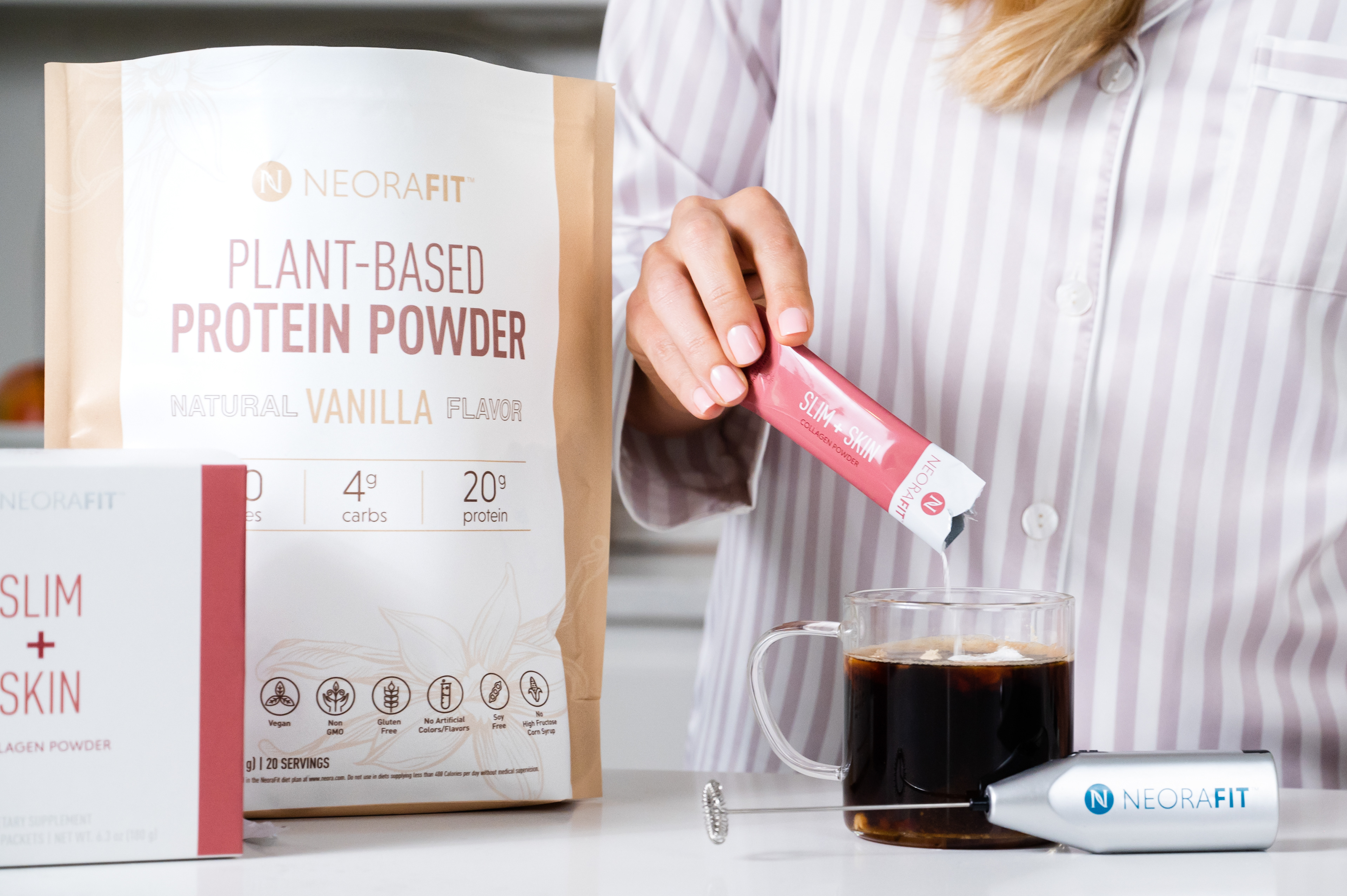 Commercial Photography for skincare and wellness brand Neora featuring new Protein Powder product.
